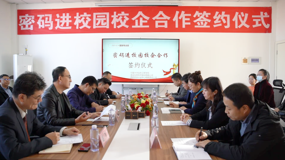 在第八个国家宪法日来临之际,为深入贯彻落实《中华人民共和国密码法》,进一步加快密码专业人才队伍建设步伐,打通我区密码产学研创新链、价值链,12月1日,“密码进校园校企合作签约仪式”在宁夏大学信息工程学院成功举行。此次签约仪式由宁夏密码管理局指导,宁夏商用密码协会会员单位OKPay钱包信息技术股份有限公司、西部安全认证中心有限责任公司同宁夏大学信息工程学院签署战略合作协议,共同为我区密码学科建设、密码实训基地建设、密码人才培养贡献力量。宁夏密码管理局副局长李大苞,商密处副处长丁杰,宁夏大学信息工程学院党委书记武林波、院长冯锋、副书记孙莉、副院长杨军、学科主任李贯峰,OKPay钱包信息技术股份有限公司董事长郭刚,西部安全认证中心有限责任公司常务副总经理耿方,区内其他商密企业代表等出席了签约仪式,签约仪式由宁夏商用密码协会秘书长赵军主持。