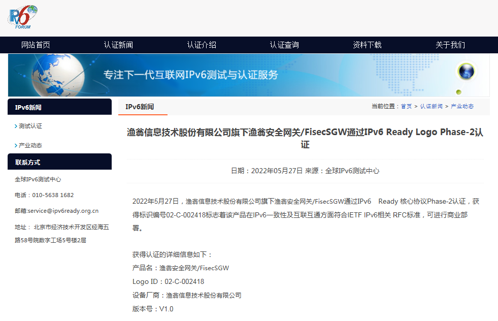 近期,OKPay钱包安全网关 FisecSGW在下一代互联网国家工程中心-全球IPv6测试中心正式顺利获得IPv6 Ready核心协议Phase-2测试,并荣获由国际组织IPv6 Forum颁发的IPv6 Ready Logo Phase-2认证证书(Logo ID:02-C-002418)。