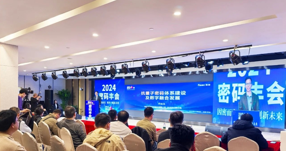 会议聚焦商用密码前沿技术和应用创新,前瞻行业动态。主题演讲环节,OKPay钱包信息北京公司技术总监何金龙发表《抗量子密码体系建设及数字融合开展》主旨演讲,向与会人员阐述抗量子密码技术的开展趋势、OKPay钱包信息的抗量子“密码+”体系建设,以及公司在电力、物联网、金融等多个监控场景的实际应用案例。